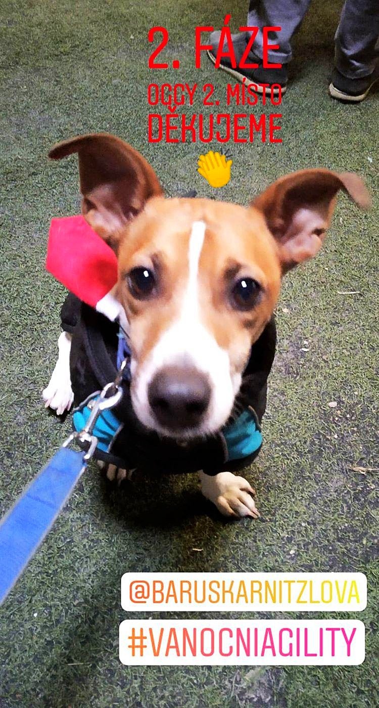 S Oggym jsem agility začala lehce cvičit v létě 2017 na táboře ve Vojkově, potom jsem absolvovala pár tréninků s Alčou v Praze, a na podzim jsme začali chodit na agility tady u nás k Báře Škarnitzlové. V zimě jsem k ní potom začala chodit i s Emou do štěněcí školky a postupně přešly taky k agility tréninkům. Hlavně tedy v období podzim až jaro, máme naštěstí k dispozici halu o pár vesnic vedle. A Barča před Vánocemi každý rok organizuje své klubové sranda závody pro své žáky. Už loni jsem se zúčastnila s Oggym a v začátečnících (bez zónovek) jsme nakonec vybojovali úžasné 3. místo (sice s rozvahou, ale bez chyb :D). S Emou jsme loni jen zkusily kategorii štěňátek, ale po asi dvou trénincích to bylo hlavně o tom si zkusit zase jiné prostředí :-)
